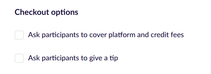 Ticket sales and shops pages - the only option is "cover fees" only, and if enabled, fees will be automatically added and your buyers will not be presented with the option to opt-out.